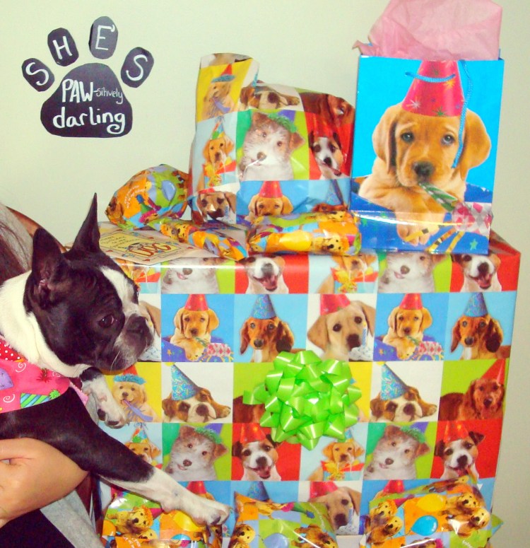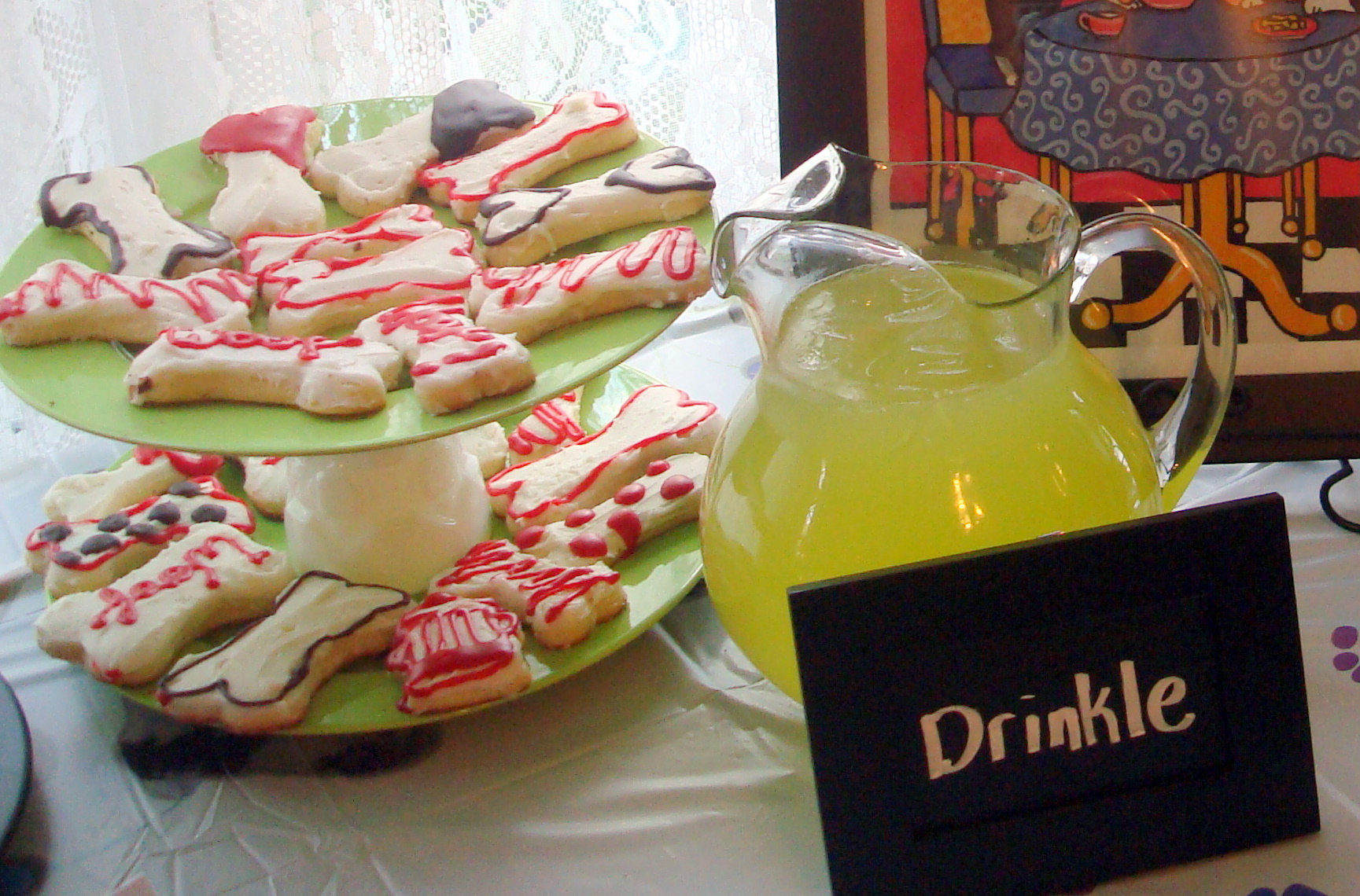 In the end, all of the food, tasty treats and decorations were a mere backdrop for your average kids – ahem: puppy’s party. . . complete with presents, singing “happy birthday”, and one exhausted post-party pup!