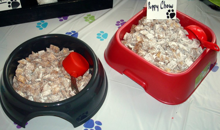 Puppy chow (chocolate peanut-butter chex mix) has to be one of the most-loved party treats of all time. . . and it just happens to look just like dog food while still tasting like MANNA!
