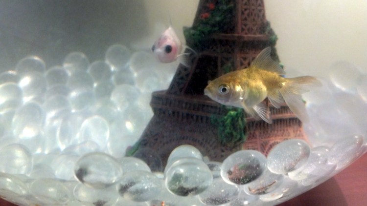 Once they were safely installed in my classroom (after a precarious car ride with a very large open tank), my students welcomed them excitedly. One student asked me their names, and when I responded “Napoleon and Josephine”, he started laughing and said, “Oh man, about halfway through the year you should get a little fishbowl and exile Napoleon!” There you have my last quotable moment of the day, folks.
