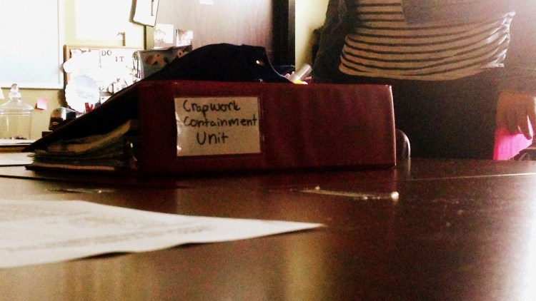 Now, while this definitely made me chuckle (and inspired the taking of a photo), it was also slightly disheartening. Nobody likes their subject matter (you know, that stuff they spend at least 5 hours a day/25 hours a week teaching) to be called “crapwork”. Based on nice things this wonderful student has said, I know it wasn’t intended to be a commentary on my class in particular, but still . . . disheartening on principle for a teacher, don’t you think? Anyhow, once this laughter had passed, the rest my Friday classes proceeded with an alarming degree of seriousness.