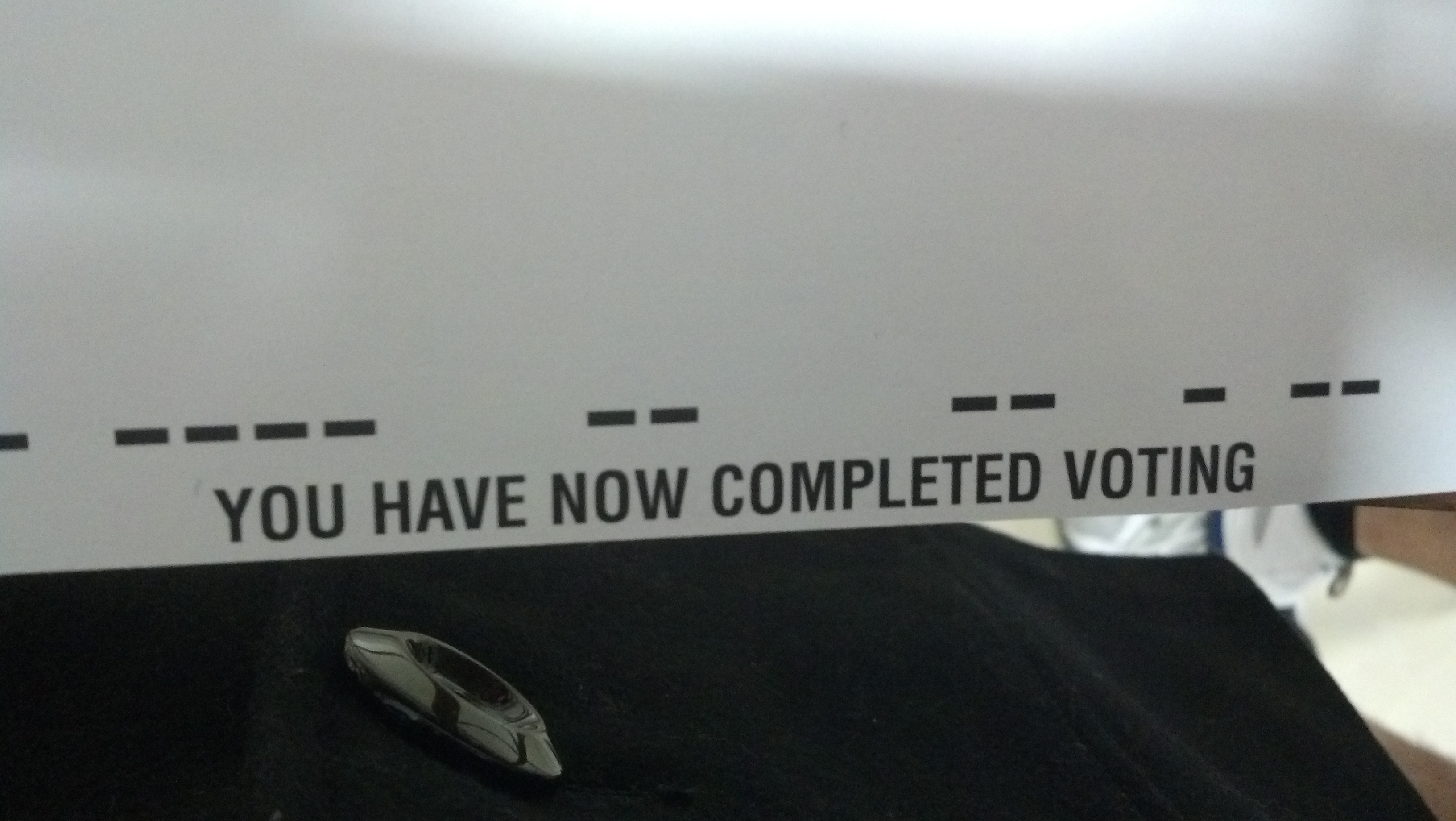Thankfully, the (mostly adorably elderly) poll-workers were rockin’, and the line was speedy and it was not long before I stood, ballot in hand and ready to vote. I do not plan to tell you who I voted for. . . (if you know me, you can probably guess), but vote, I did.
