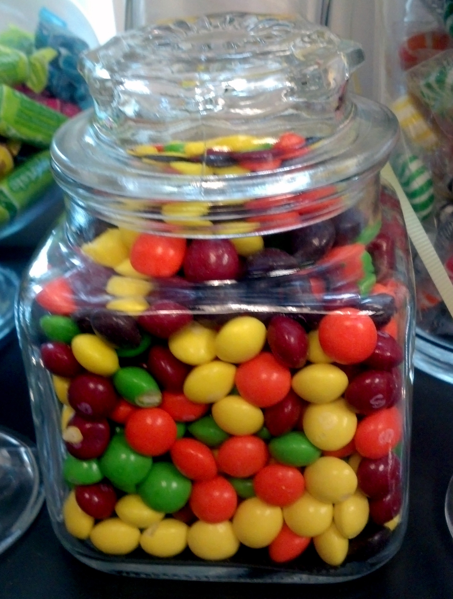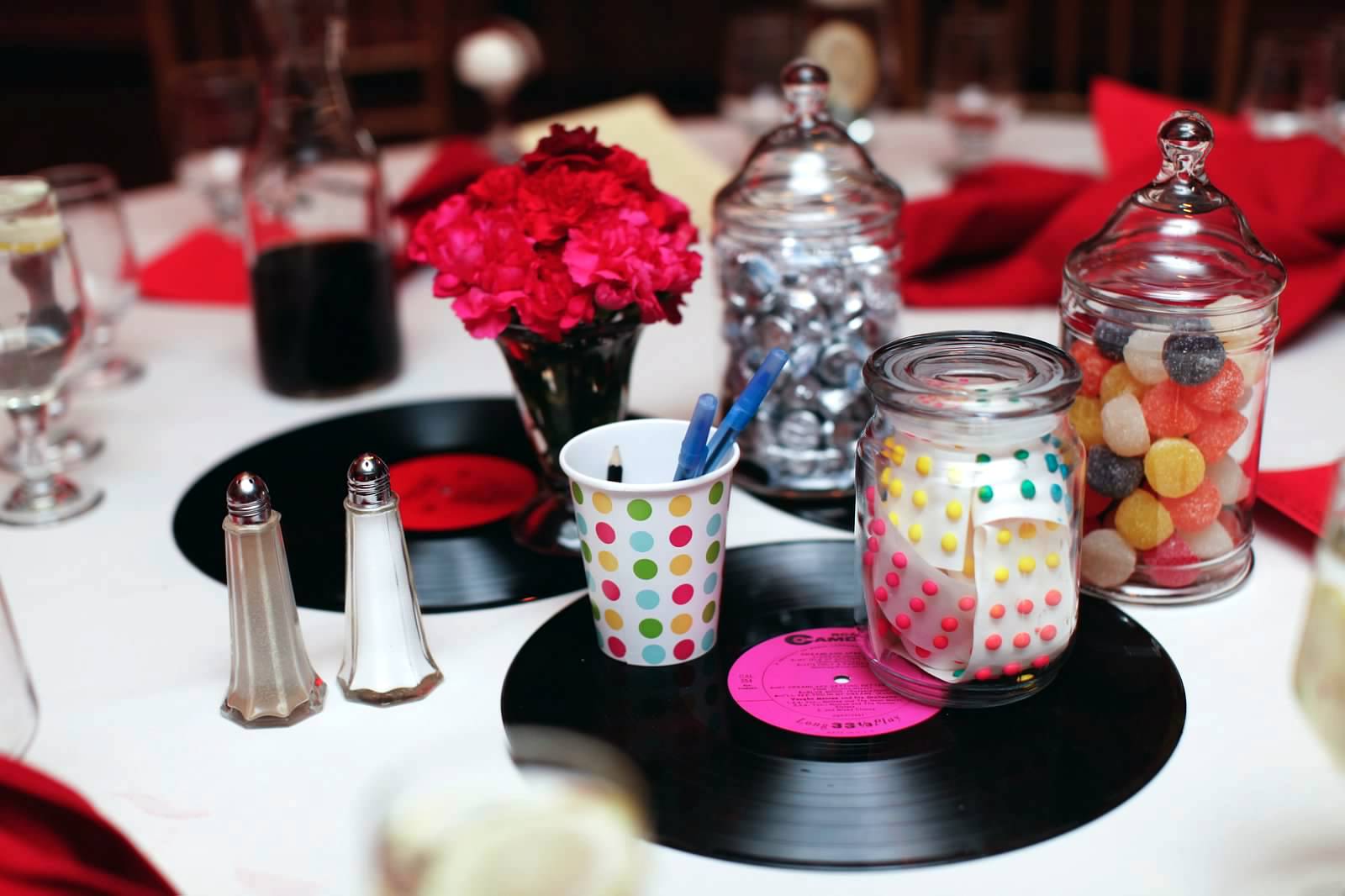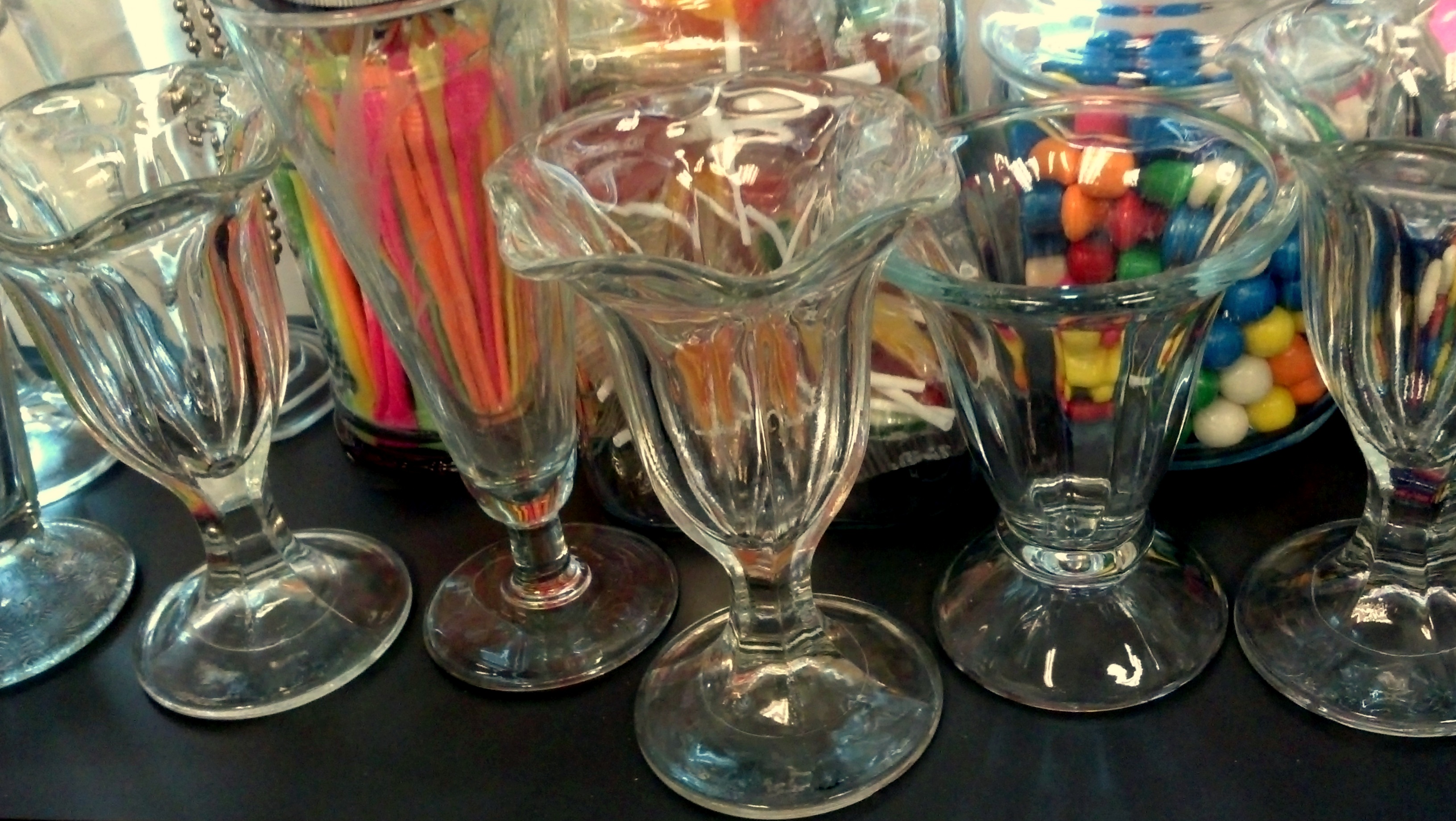 Seeing as how soda fountains also doubled as sweet-shoppes, it was only appropriate to include a hefty amount of colorful sugar for the centerpieces!