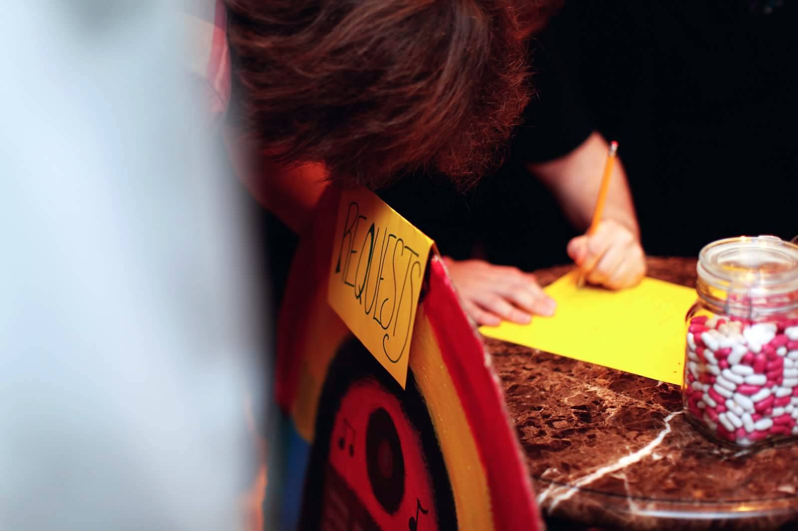 What would a dance be without music, no? In lieu of the snazzy jukebox one might actually have found in a fabulous fifties Soda Shoppe, we instead went with the more popular option of a DJ. . . it was not likely we would find a jukebox with Gangnam Style in it. One of my artsy student helpers put together this lovely painted jukebox to lend to the decor.