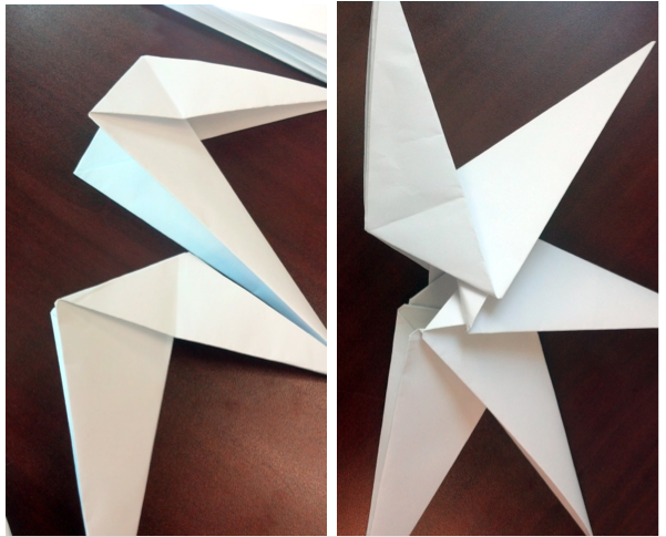 I would walk you through the rest of it, but the tutorials from earlier really are better. When you have 8 of the finished pieces, you slide them together until there are 8 connected pieces!