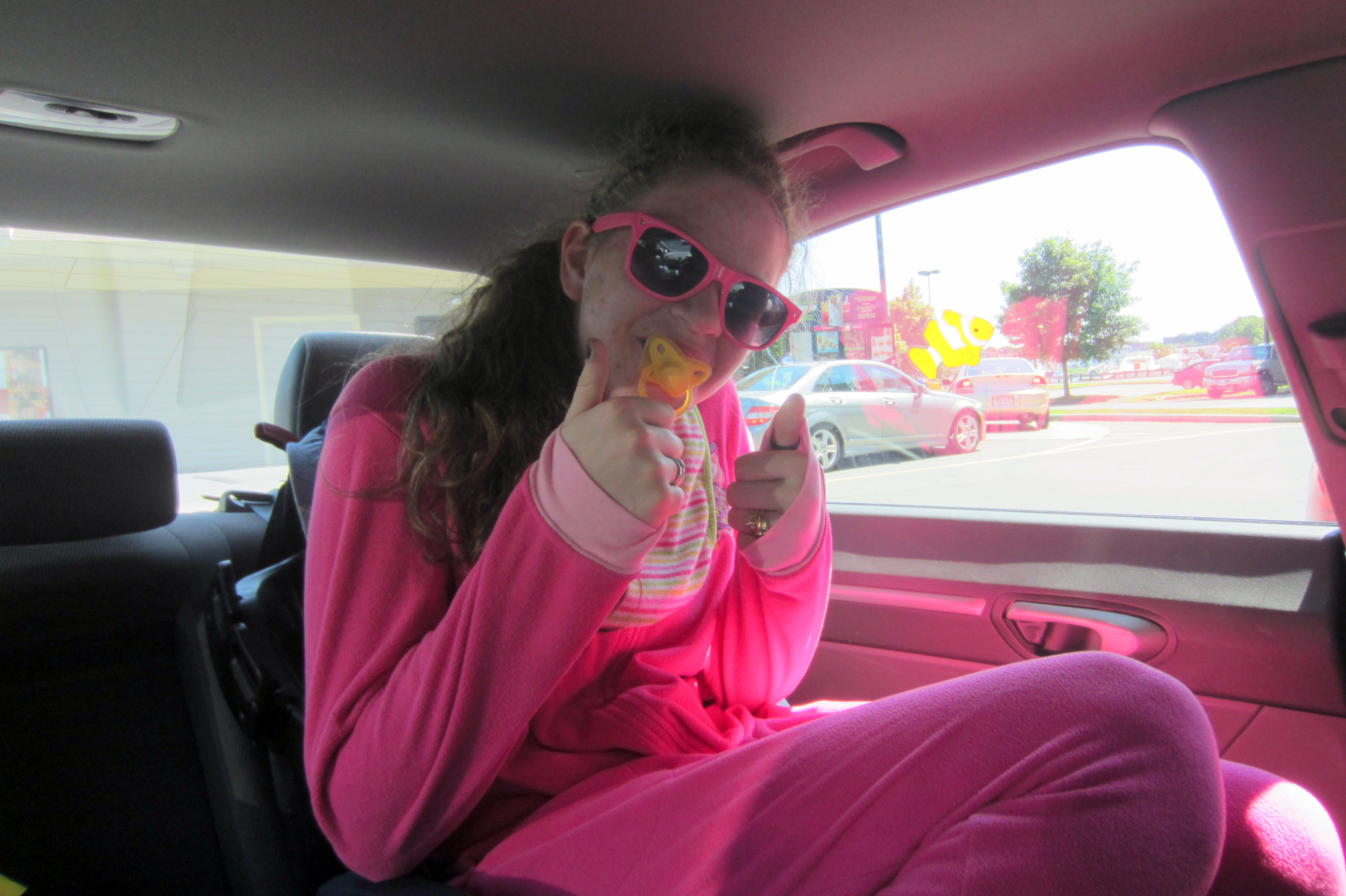 19.)Go through a fast food drive-through with an adult dressed as a baby in a car seat in the back. The adult must have a pacifier in his or her mouth and must be pre-verbal.