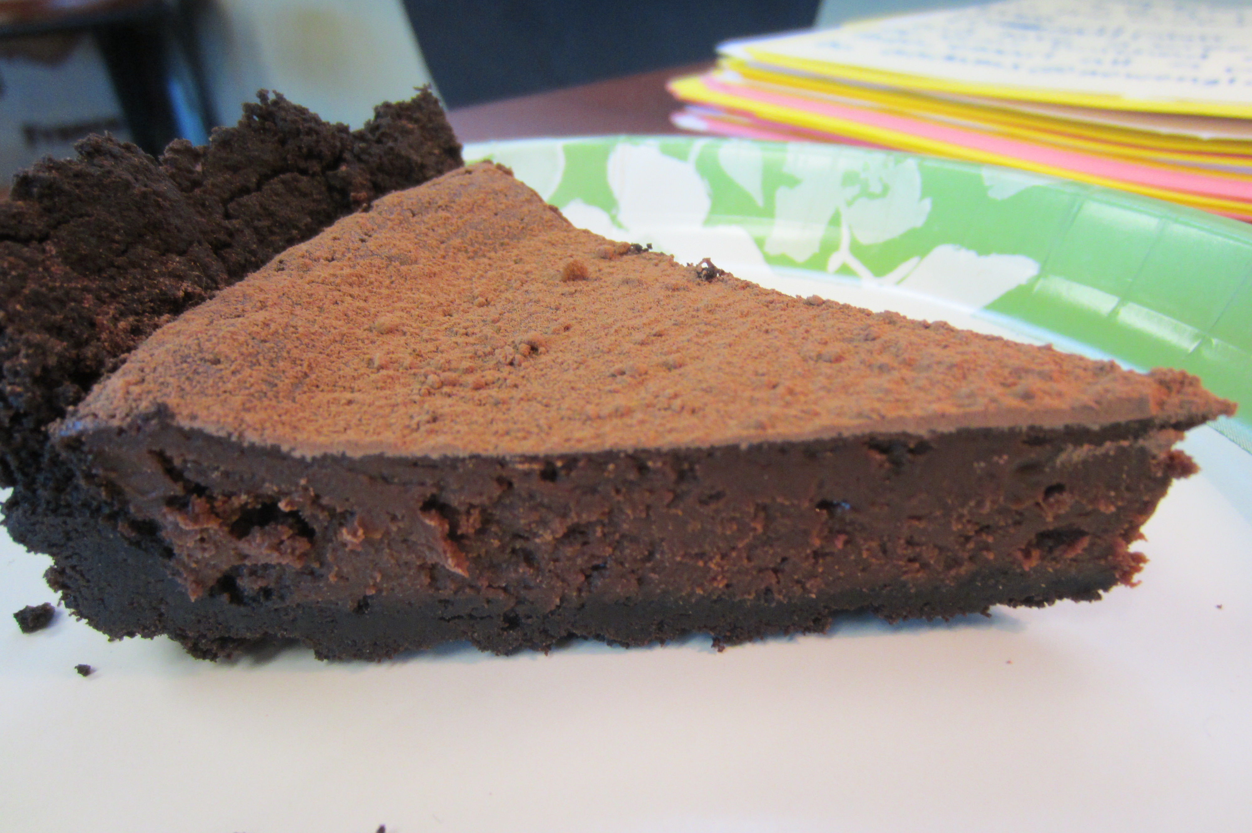 I get nervous trying new recipes sometimes. I mean, who doesn’t? You never really know how it’s going to turn out – especially when it’s not posted by amateur bakers like yourself. Trying to mimic professional cooking conditions is not so easy when you rent an apartment with an electric stove and limited kitchen space. BUT, When I stumbled upon the recipe for Chocolate Truffle Tart on Gourmet.com, I knew it was not one I could just scroll on by. The pictures on Gourmet.com are like food-porn, and I am a confirmed chocoholic. Just thinking about the chocolate decadence . . . I couldn’t resist! I pinned it onto my recipe board for a rainy day, and waited for the right occasion, which turned out to be just last week!
