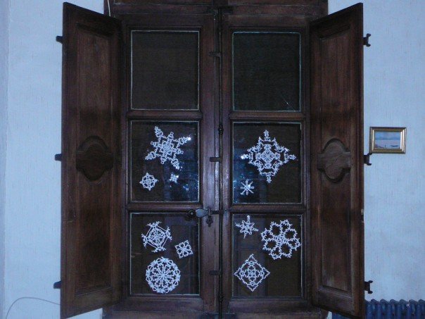Music is performed live on a tiny little stage and broadcasted via speakers all up and down the Cours Mirabeau, which can sometimes be an unfortunate convenience. Yesterday there was some second-rate, Russian-sounding, Christmas-music-slash-opera. The woman had a voice like vinegar. Needless to say, that was not such a nice thing, but they did play “Walkin’ in a Winter Wonderland” at one point! It inspired me to cut out my snowflakes to put up on the windows for Winter!