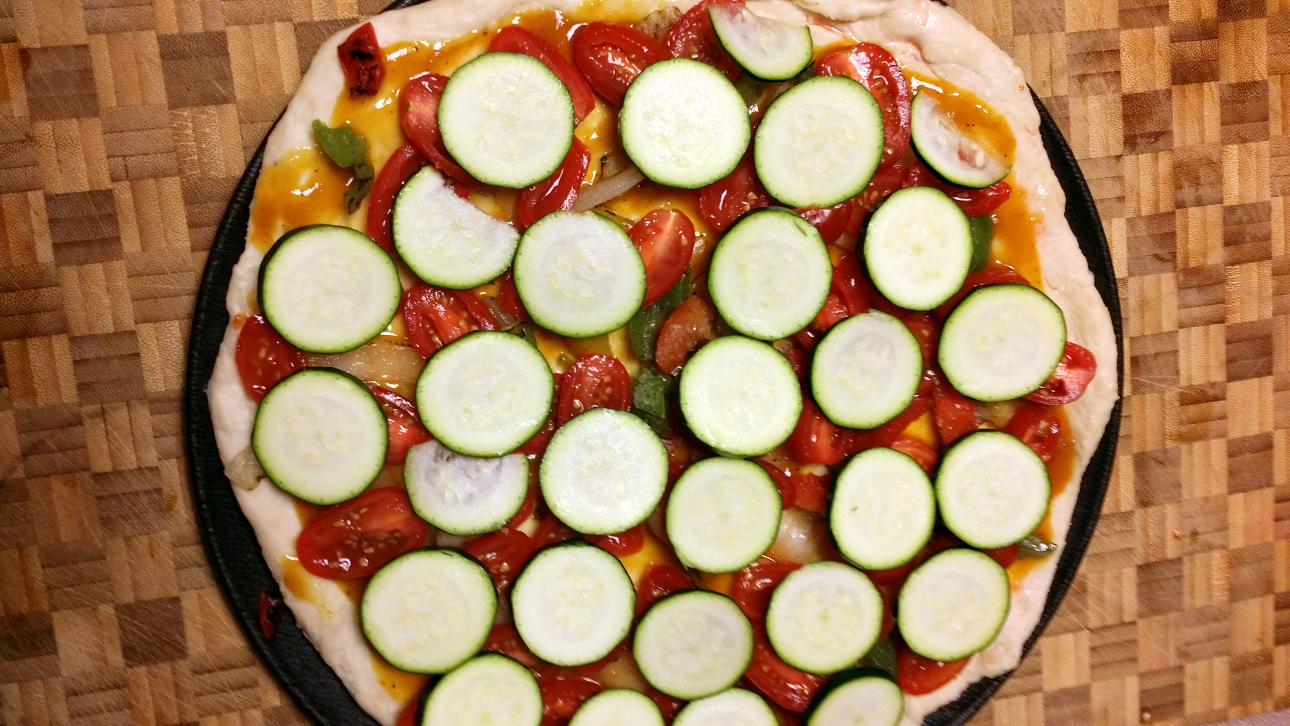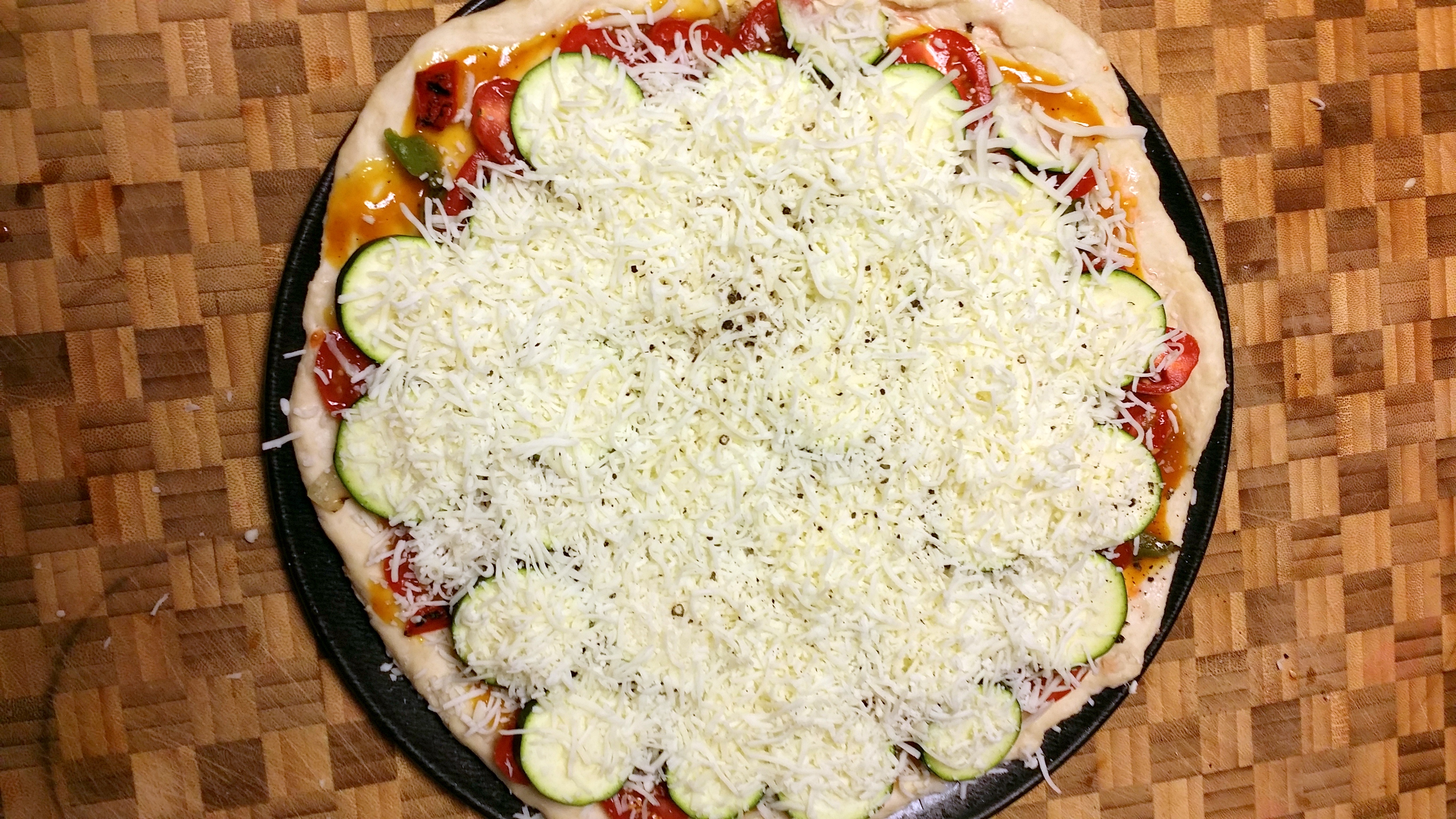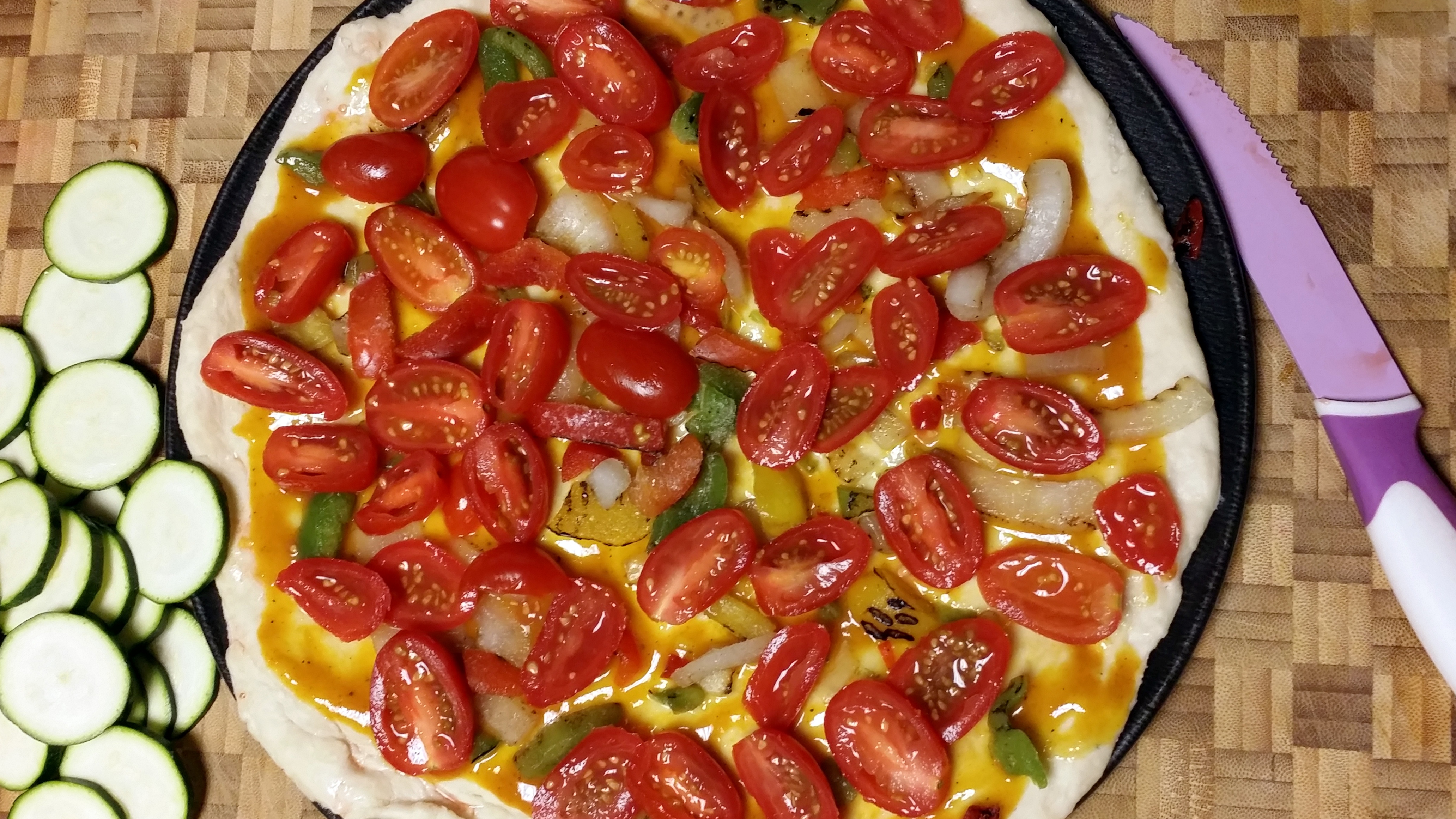 Step 5: Add more than you think you want. Pizza with stuff is always better. Balance the amount of bread out with obscene amounts of vegetables.