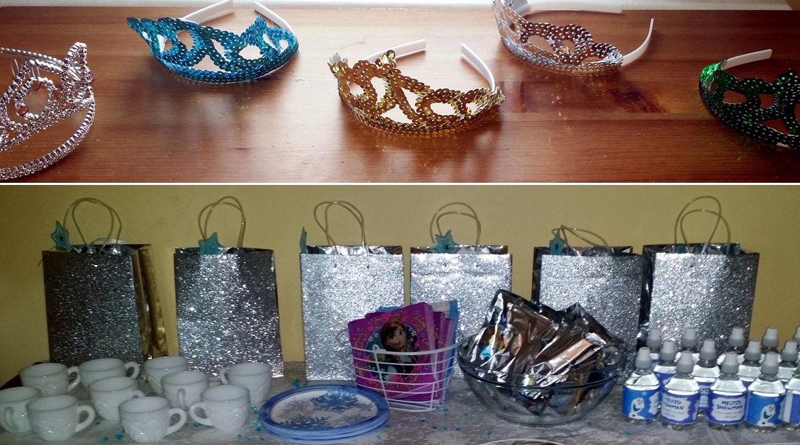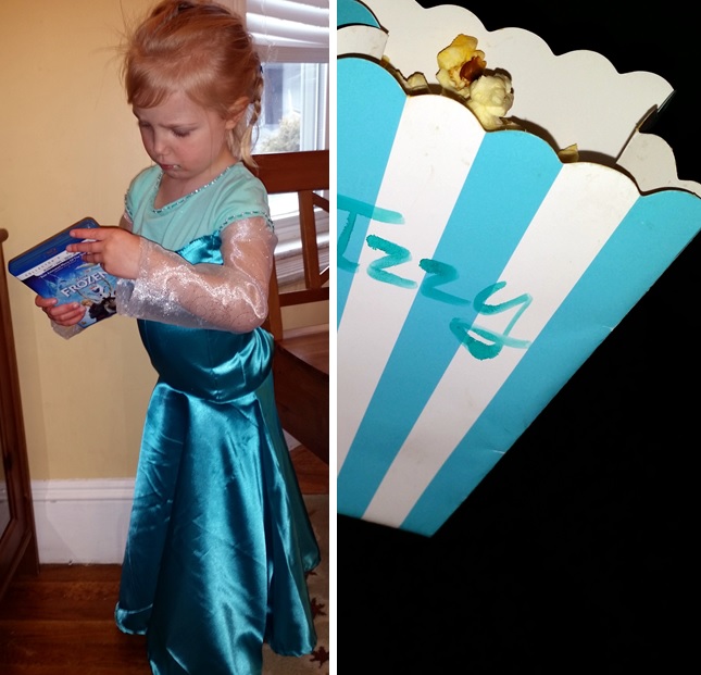 It’s a great chance to check out printables available online (many for free!) that can add to the cute-factor. The Melted Snowman labels for water bottles was a nice touch, and as you can see, there are small olaf-stickers on the chocolate kisses! It’s also a great chance to tap into any stores of crystal or milk glass flatware and princess-costumery you have lying around.