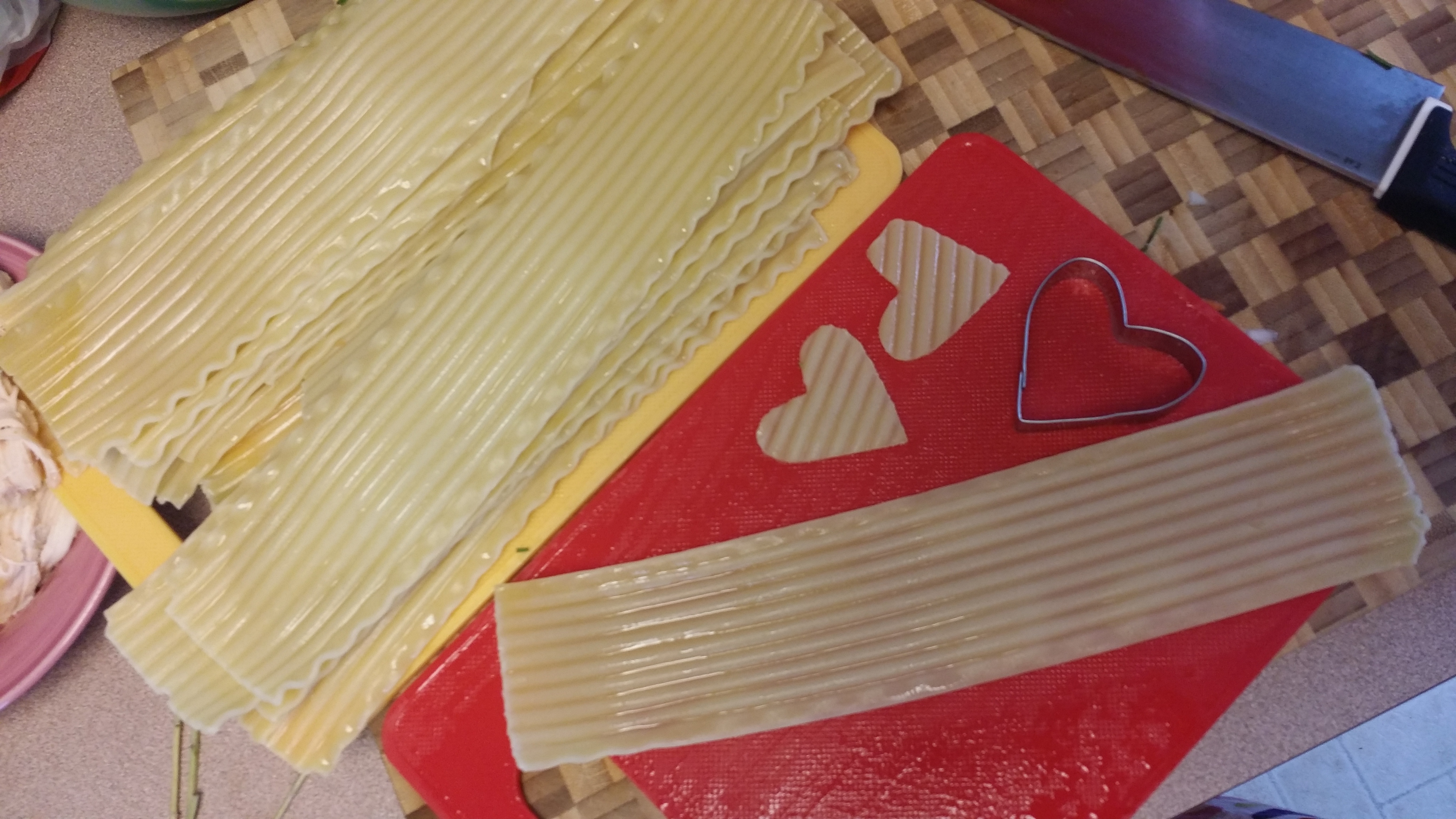 Use the heart-shaped cookie/fondant cutters to cut hearts out of both!20150214_141014
