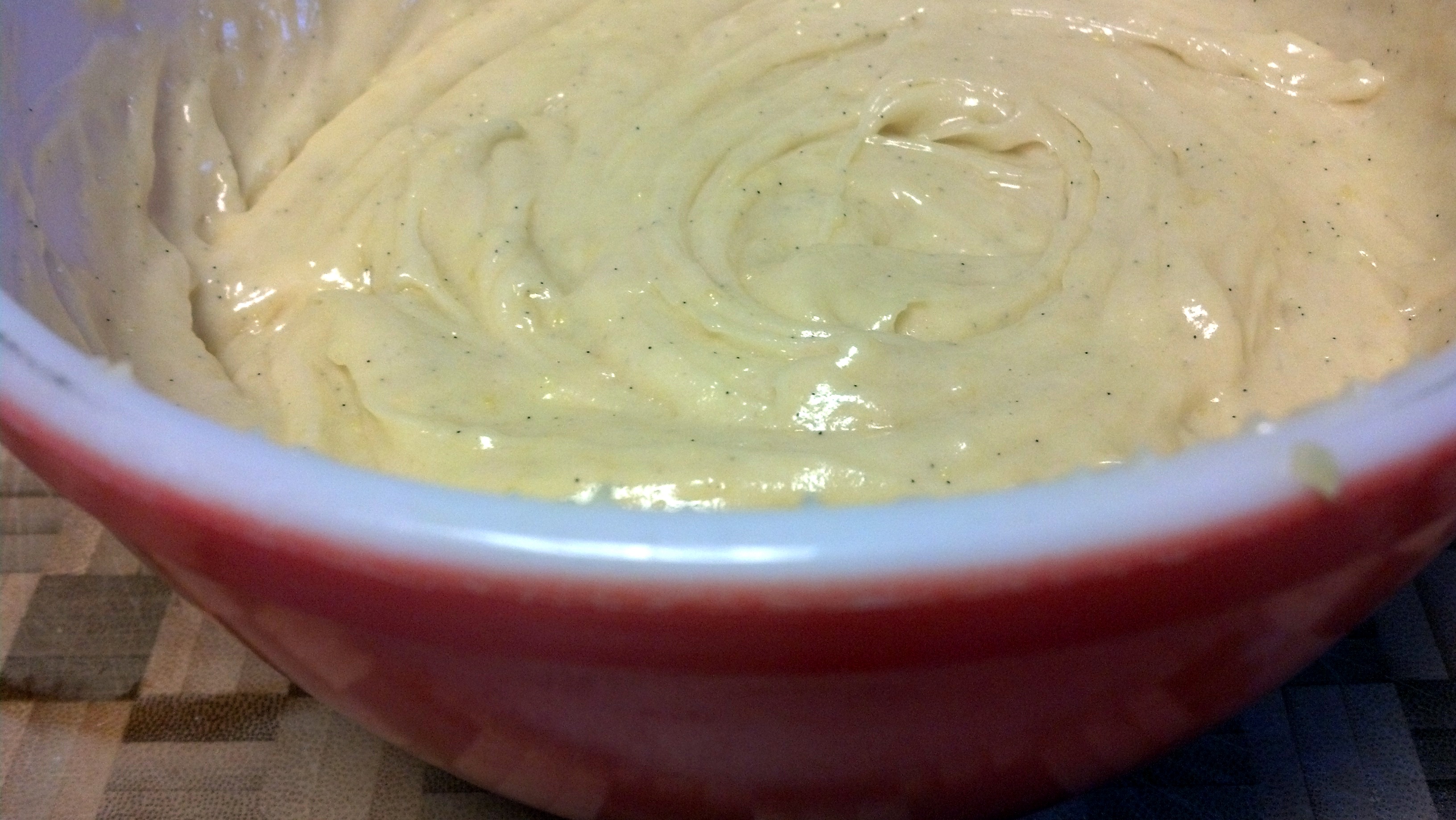 Now that the mixture smells amazing and is flecked with beautiful bits of vanilla, it should look sort of like this: