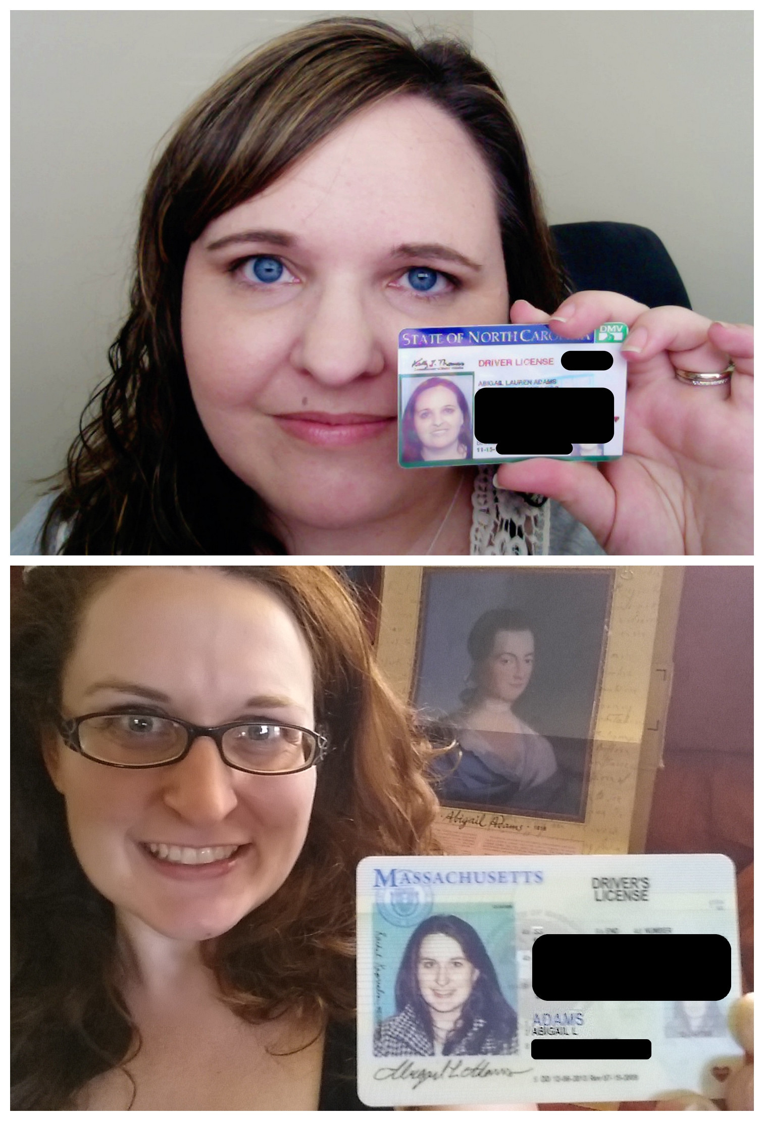 Photo Prompt: Find someone with the exact same name as you who lives in another state, province, or country. We must see two photos together: the two faces and two ID cards with all private/contact information blacked out except for your names and birth dates.
