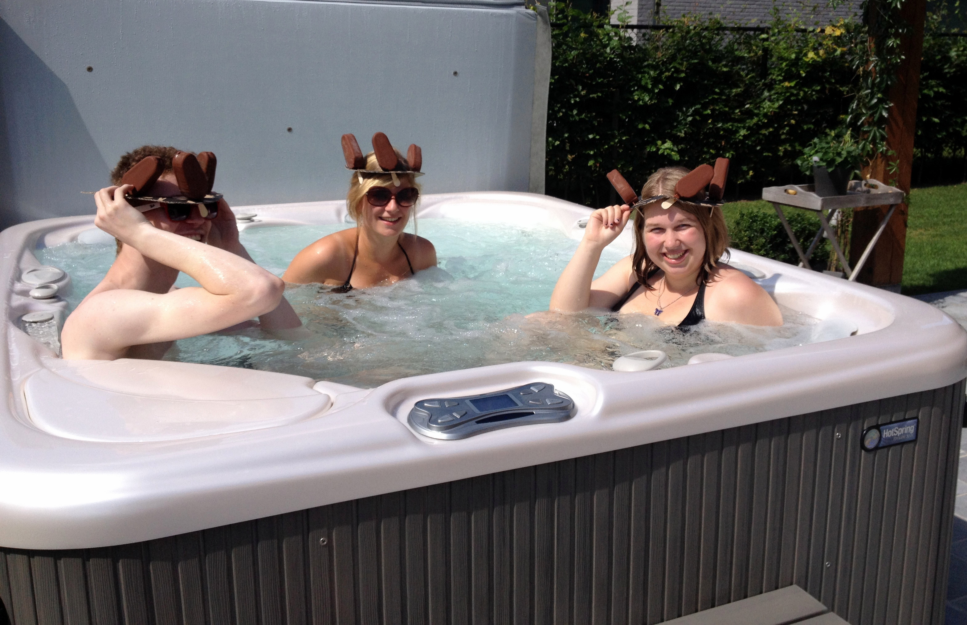 Photo Prompt: GISHWHES has taken its toll this year. You deserve a break. Hit the hot tub with a couple of friends… wearing hats made of ice cream.