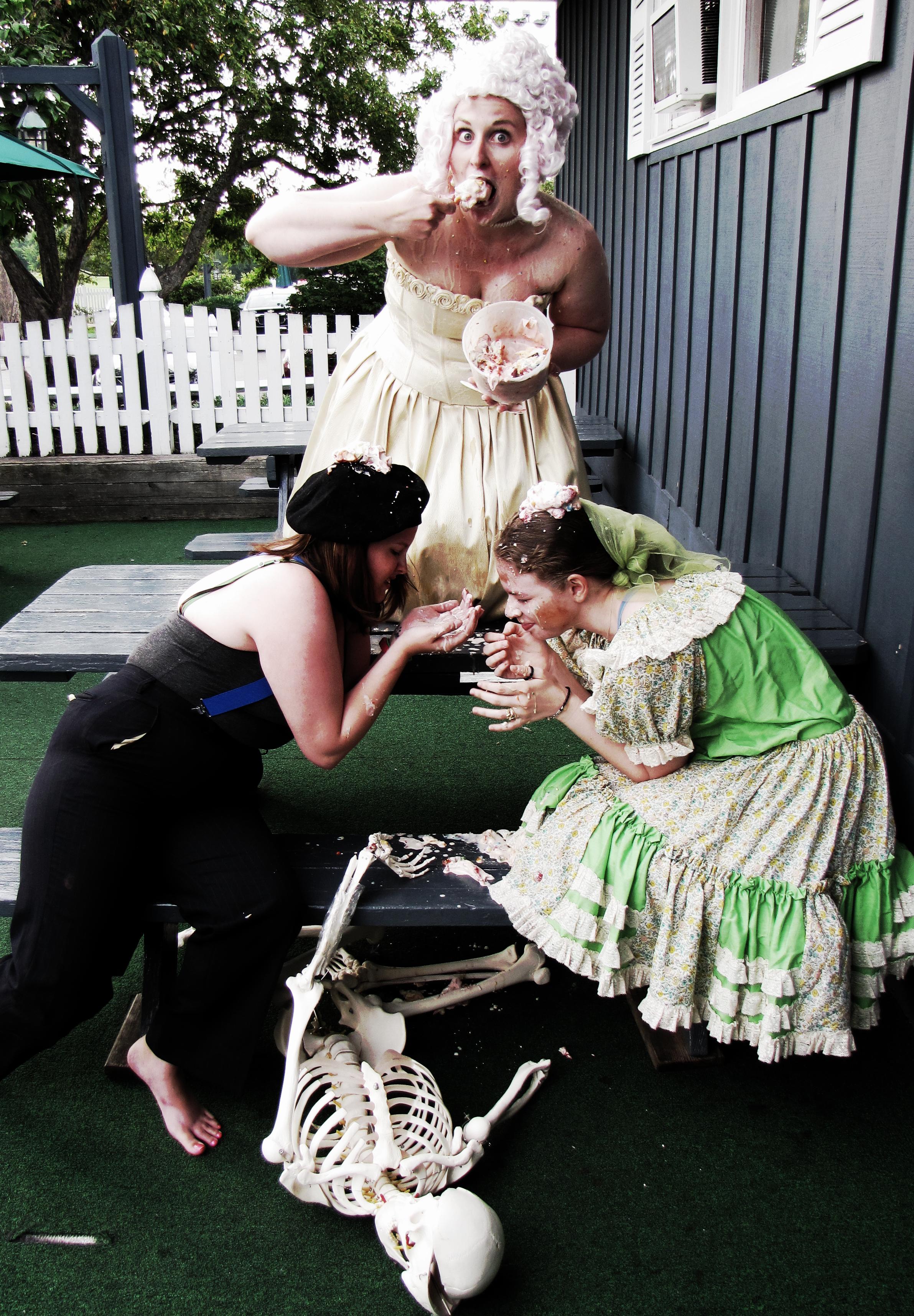 Photo Prompt: You’ve heard of Ronald Reagan’s “Trickle-down Economics”? The idea is that when rich people get richer, they spend more money doing things like getting their nails done and having their Porches waxed, and that in turn creates more jobs for pedicurist and car washers and other lower income families. Show us what trickle-down ice-cream-onomics looks like: One person on top, messily eating an enormous, melting Sunday, with two people on the floor below, trying to catch the drippings in their mouths as they fall. This needs to be a real mess.