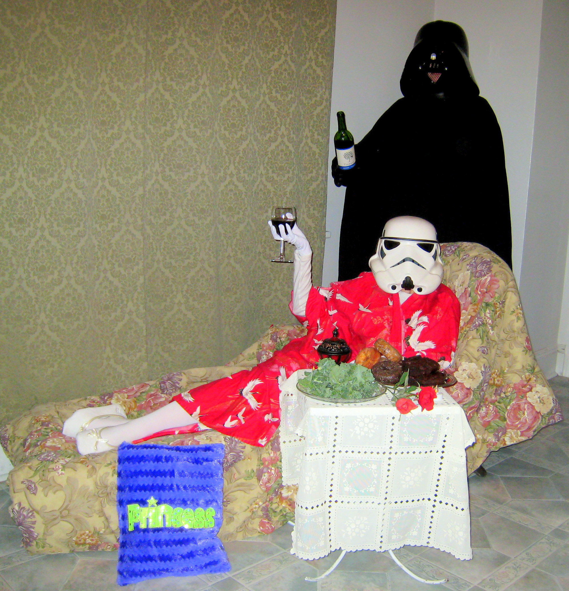Photo Prompt: It’s “me time.” Spoil, pamper and be decadent to yourself like you never have before. Oh, and P.S., you’re dressed as a Stormtrooper.