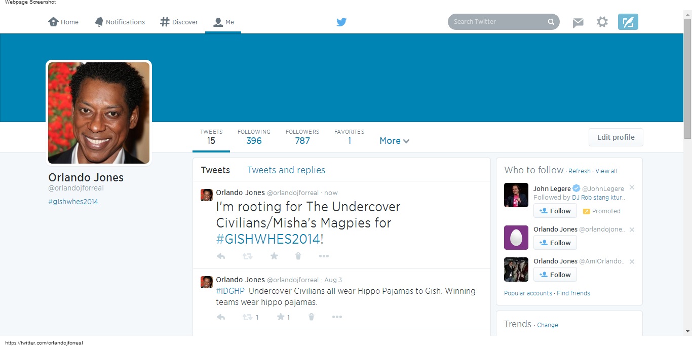 Photo Prompt: Trolling for fish is when you drag your line slowly through the water hoping to fool a fish into snatching your bait. On your favorite social media site, create a new user. Your profile avatar will be a photo or drawing of Orlando Jones. Your user name will be evocative of “Orlando Jones.” Now, masquerading as Orlando Jones, troll for–and hook–at least 400 followers.