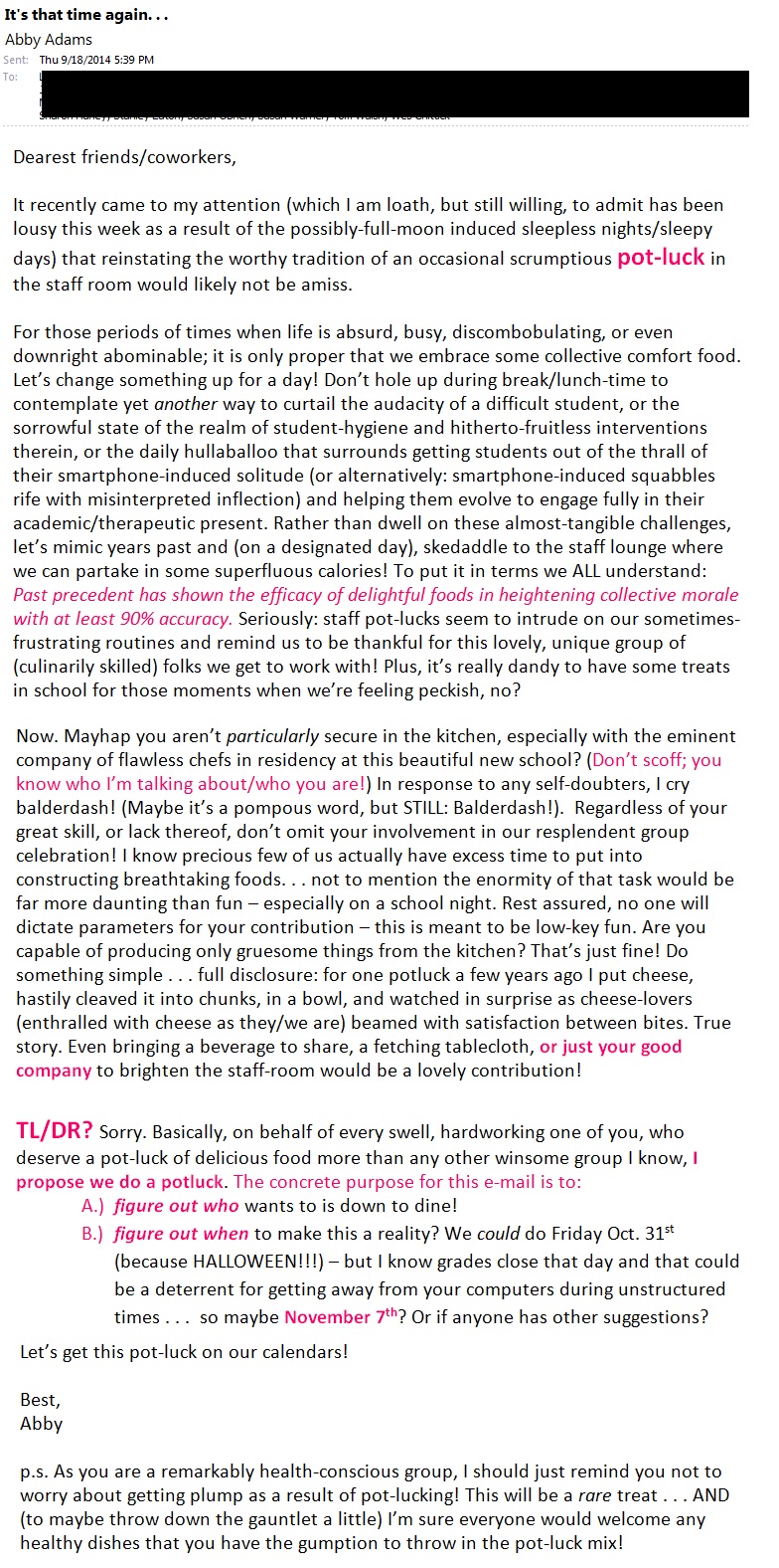 One last bit of advice about teaching and whether it is for you? If you want to go into teaching, then you should GO INTO TEACHING!!! But you should only do that if you LOVE (A) the subject you teach, and (B) people/students! Too many people get into teaching thinking it’s a “sure thing” or a “good fall-back” and do not realize that it is a job that requires a lot of heart and soul if you want to do it well. If you feel passionate about being a teacher, then pursue it full steam ahead and see what happens. I sort of fell into becoming a teacher and now I’m addicted – it’s not always perfect, but it’s still the most wonderful thing I’ve ever gotten to do!